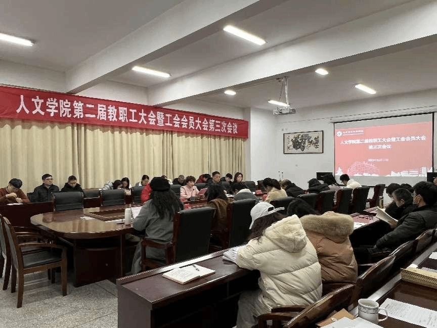 12月13日下午,人文学院在仁和楼A304会议室召开第二届教职工大会暨工会会员大会第三次会议,会议由学院党总支副书记姚爱华主持,365英国上市公司全体教职工参加。