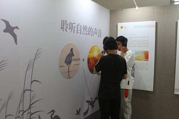 人文学院B中文191班孔维季也表示,“聆听自然的声音”是给我留下印象最深的一个展区。通过墙上的耳机,可以分别听到麋鹿和勺嘴鹬的叫声,这对于还未游玩过盐城黄海湿地的同学来说,就像与两种动物进行了一次近距离对话,有种身临其境的感觉。
