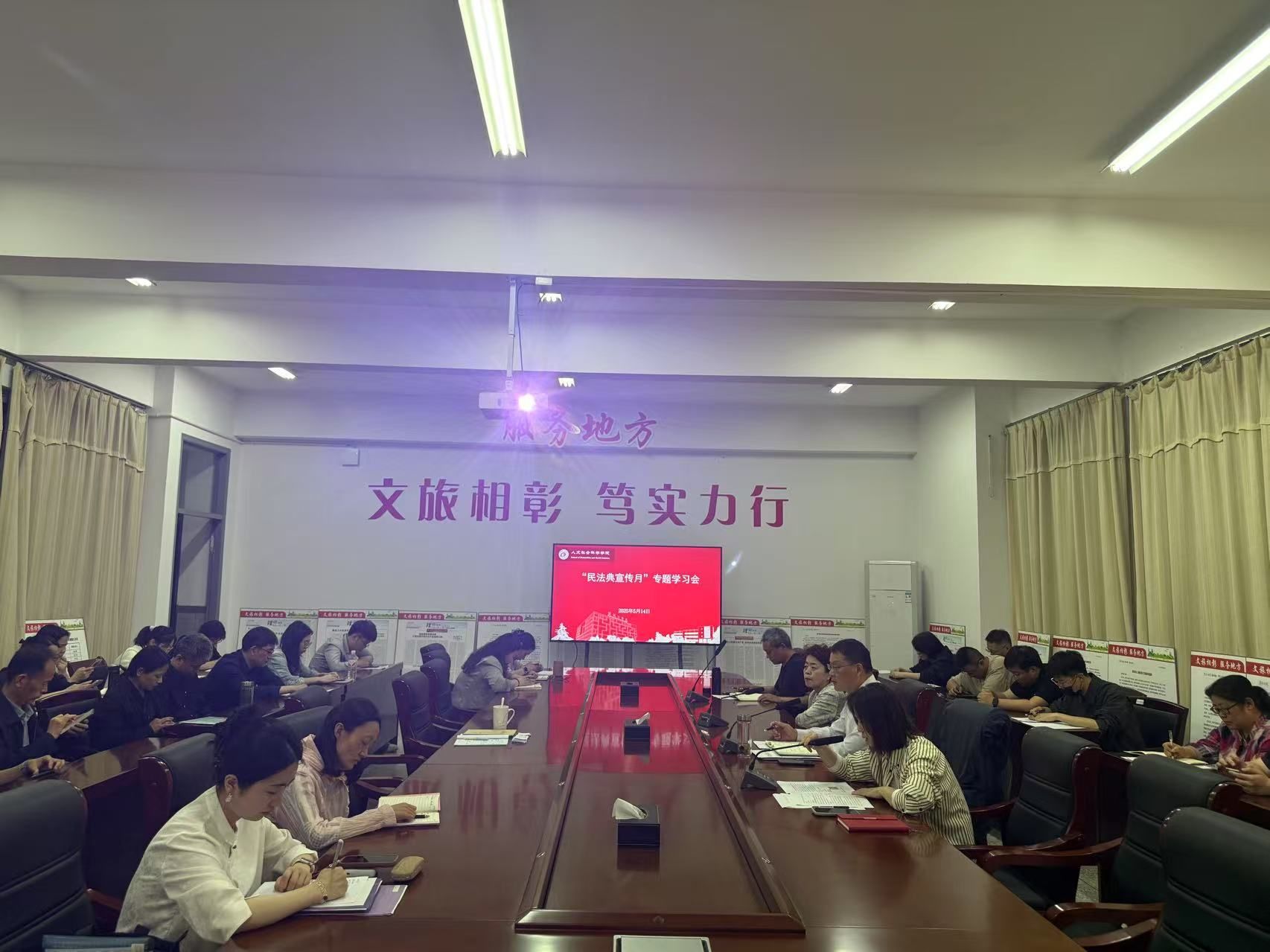 为贯彻落实习近平法治思想,深入学习《民法典》知识,人文学院在仁和楼A304开展“民法典宣传月”专题学习会,会议由学院党总支副书记姚爱华主持,学院教职工参加。