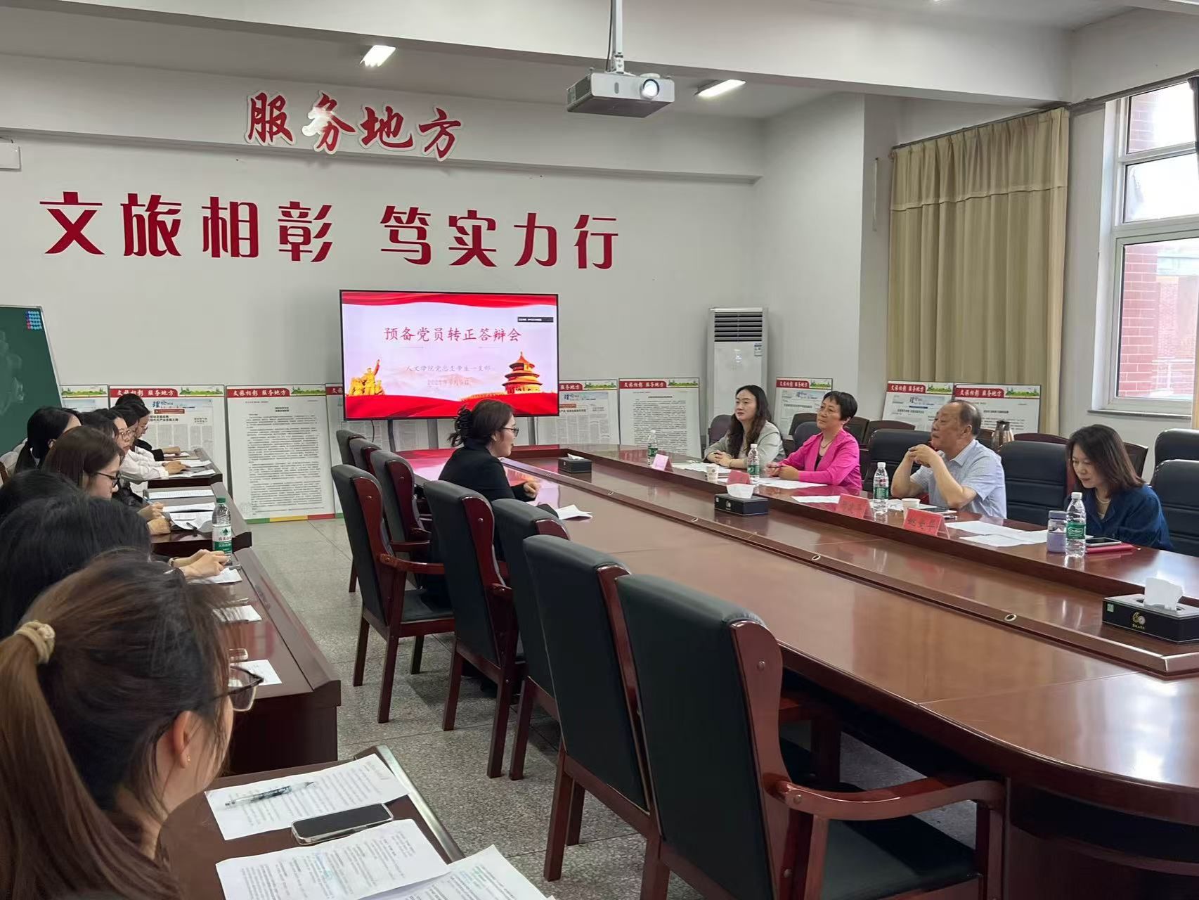 为进一步加强党员队伍建设,提高学生党员发展质量,6月5日下午,人文学院在仁和楼A304会议室召开2025年春学期预备党员转正答辩会。本次答辩会邀请校工会原主席孙琴,关工委常务副主任闻建平作为答辩小组专家,13名预备党员参加答辩。答辩会由学院党总支副书记姚爱华主持。