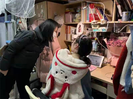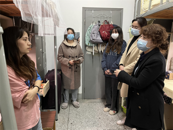 现场会后,学院疫情防控应急处置小组全体成员、辅导员及教师代表深入学生宿舍慰问学生,了解学生宿舍疫情防控、线上学习、安全卫生、考研复习及日常生活等实际情况,为同学们送去学院的关怀和问候。