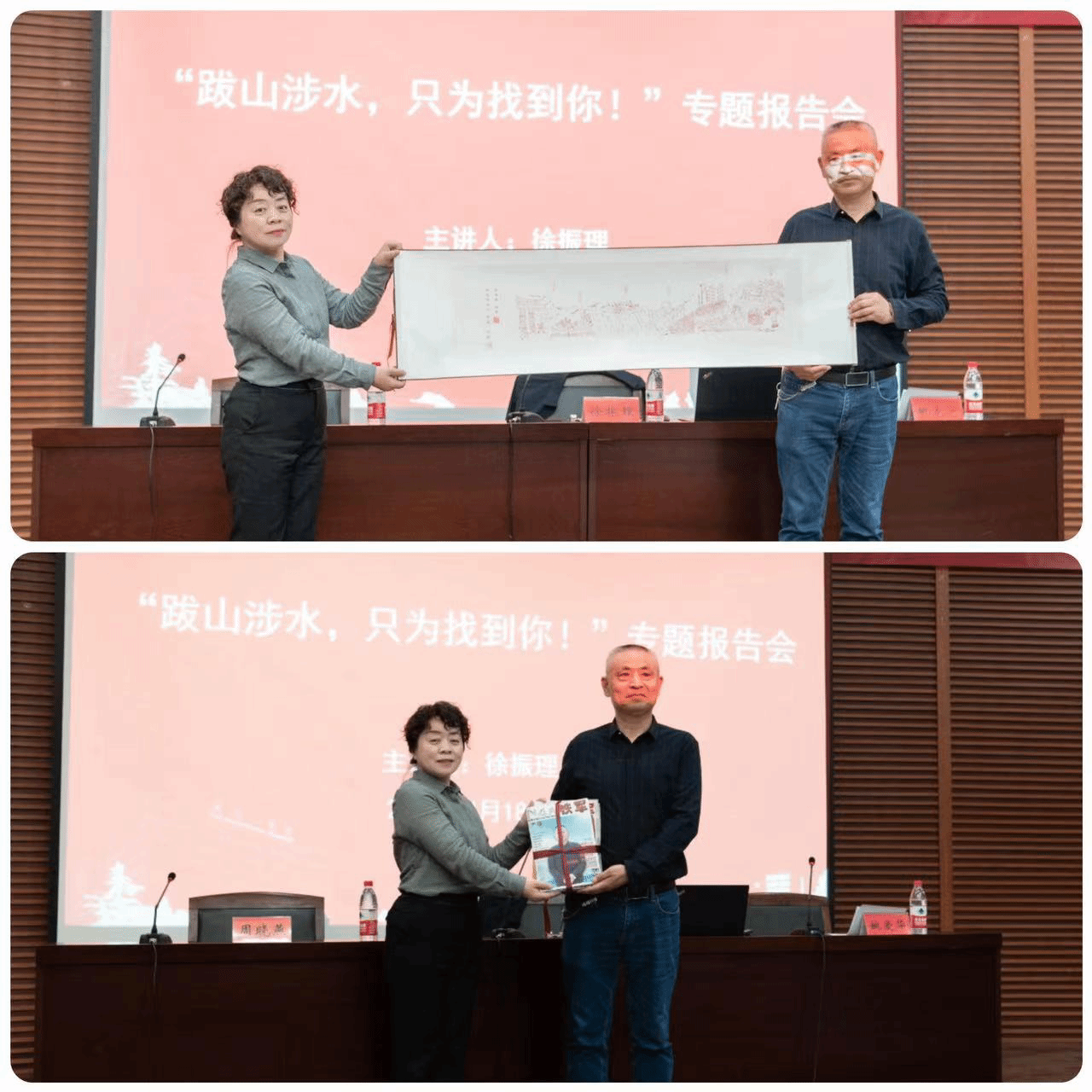 周晓燕代表人文学院接受赠画、赠书
