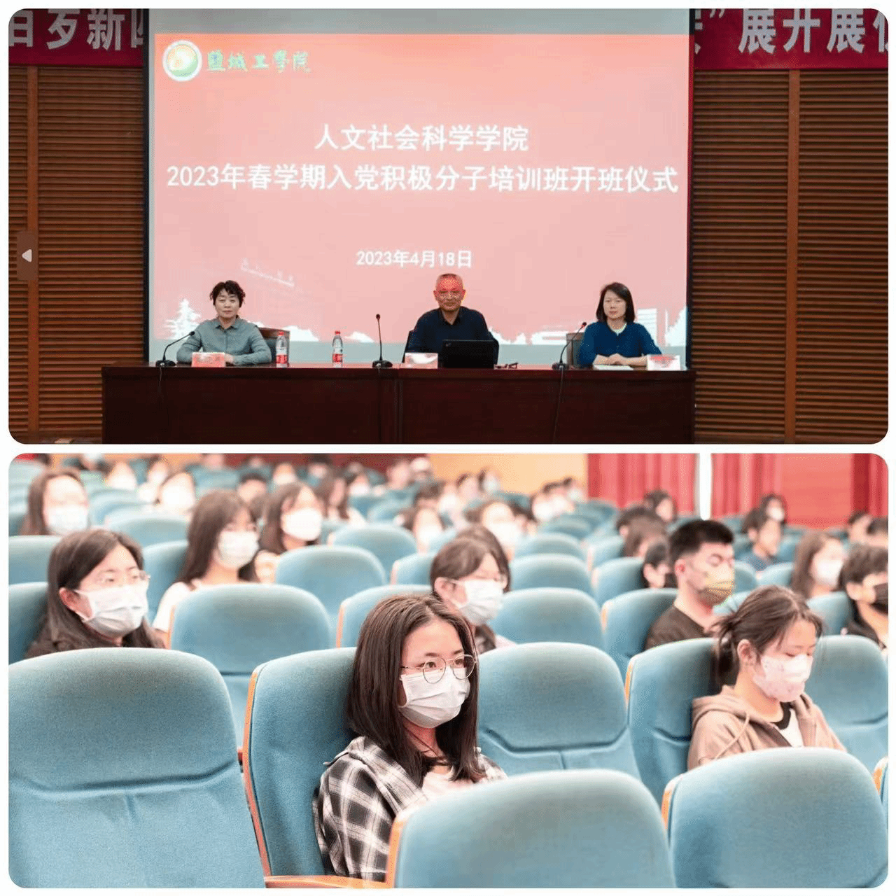 4月18日上午,人文学院在希望大道校区润美楼学术报告厅召开2023年春学期入党积极分子培训班开班仪式暨“跋山涉水,只为找到你!”专题报告会。中国好人、江苏省道德模范、滨海新四军研究会会长徐振理受邀出席,为入党积极分子作专题报告。人文学院院长周晓燕、学院专职辅导员、培训班全体学员等130余人参加。开班仪式和报告会由学院党总支副书记姚爱华主持。