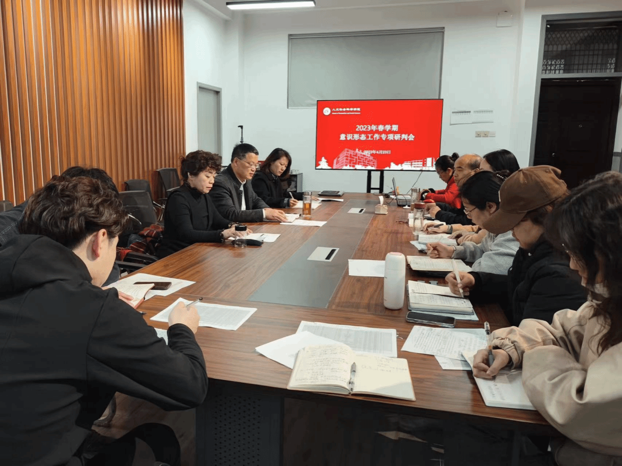 4月23日下午,在仁和楼A302会议室,人文学院党总支召开2023年春学期意识形态工作专项研判会。会议由学院党总支书记何登溢主持,领导班子成员、各系主任、全体专兼职辅导员参加。