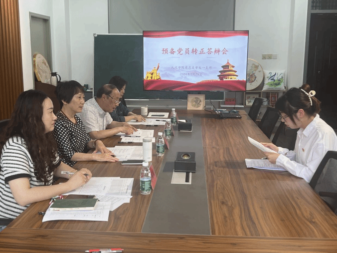 为进一步加强党员队伍建设,提高学生党员的发展质量,5月29日下午,人文学院在仁和楼A302会议室召开2024年春学期第二批中共预备党员转正答辩会。本次答辩会邀请校工会原主席孙琴,关工委常务副主任闻建平作为答辩小组专家,学院党总支副书记姚爱华全程参与,10名预备党员参加答辩。答辩会由学生党支部书记乐珮珮主持。