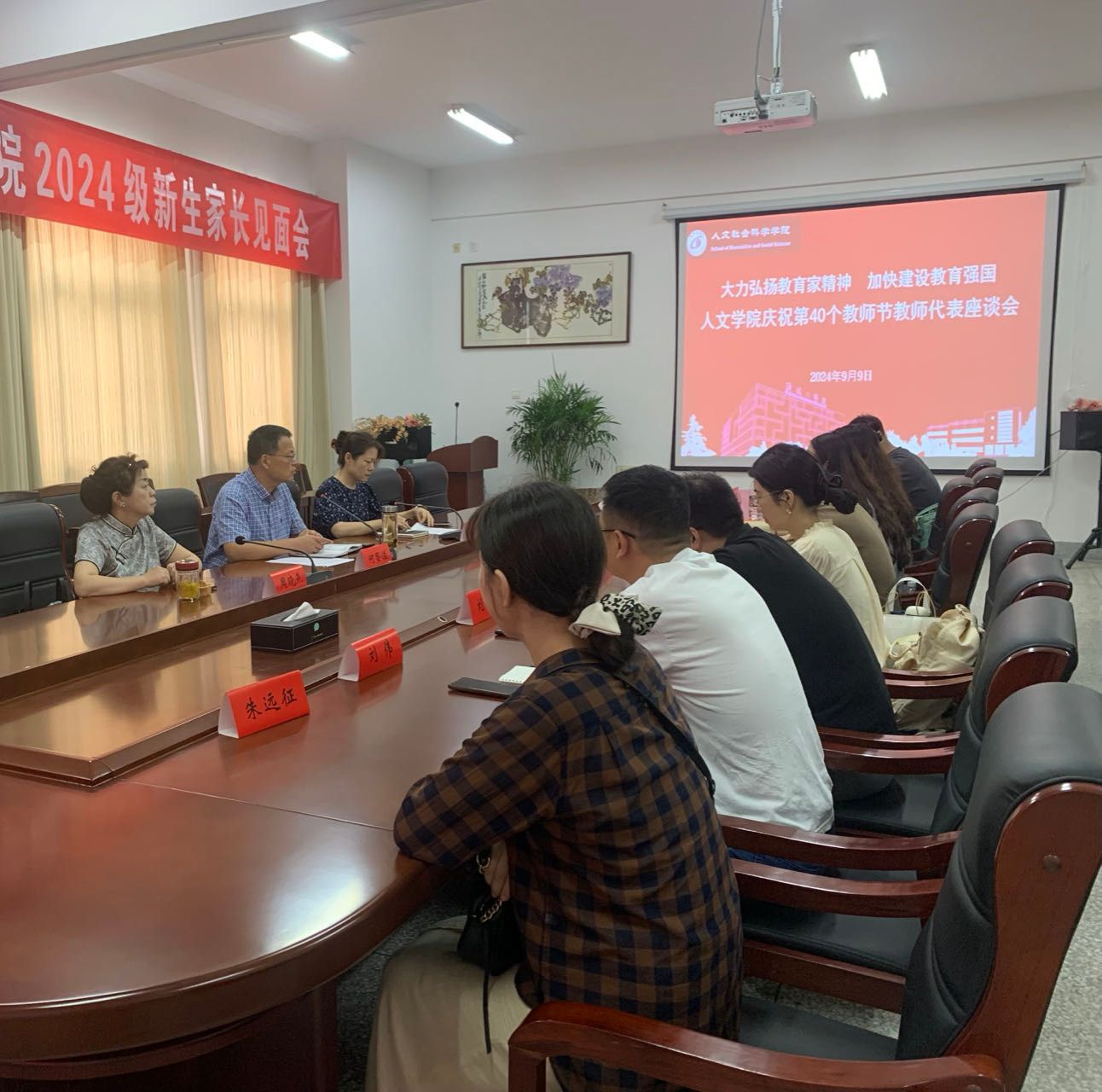 为大力弘扬教育家精神,营造尊师重教的浓厚氛围,9月9日上午,人文学院在仁和楼A304会议室组织召开庆祝第40个教师节教师代表座谈会,学院党总支书记何登溢、院长周晓燕、副书记姚爱华以及近3年来新进教师参加了座谈交流。
