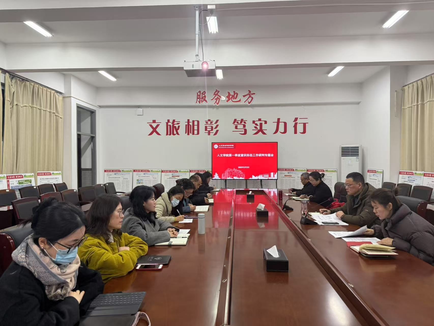 3月3日上午,在仁和楼A304会议室,人文学院党总支召开2025年第一季度意识形态工作专题研判会。会议由学院党总支书记何登溢主持,学院意识形态工作领导小组成员参加。