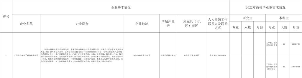 “来东台·赢未来”—江苏金科森电子科技有限公司招聘需求
