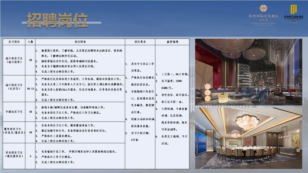 苏州国际会议酒店锦江国际酒店招聘信息