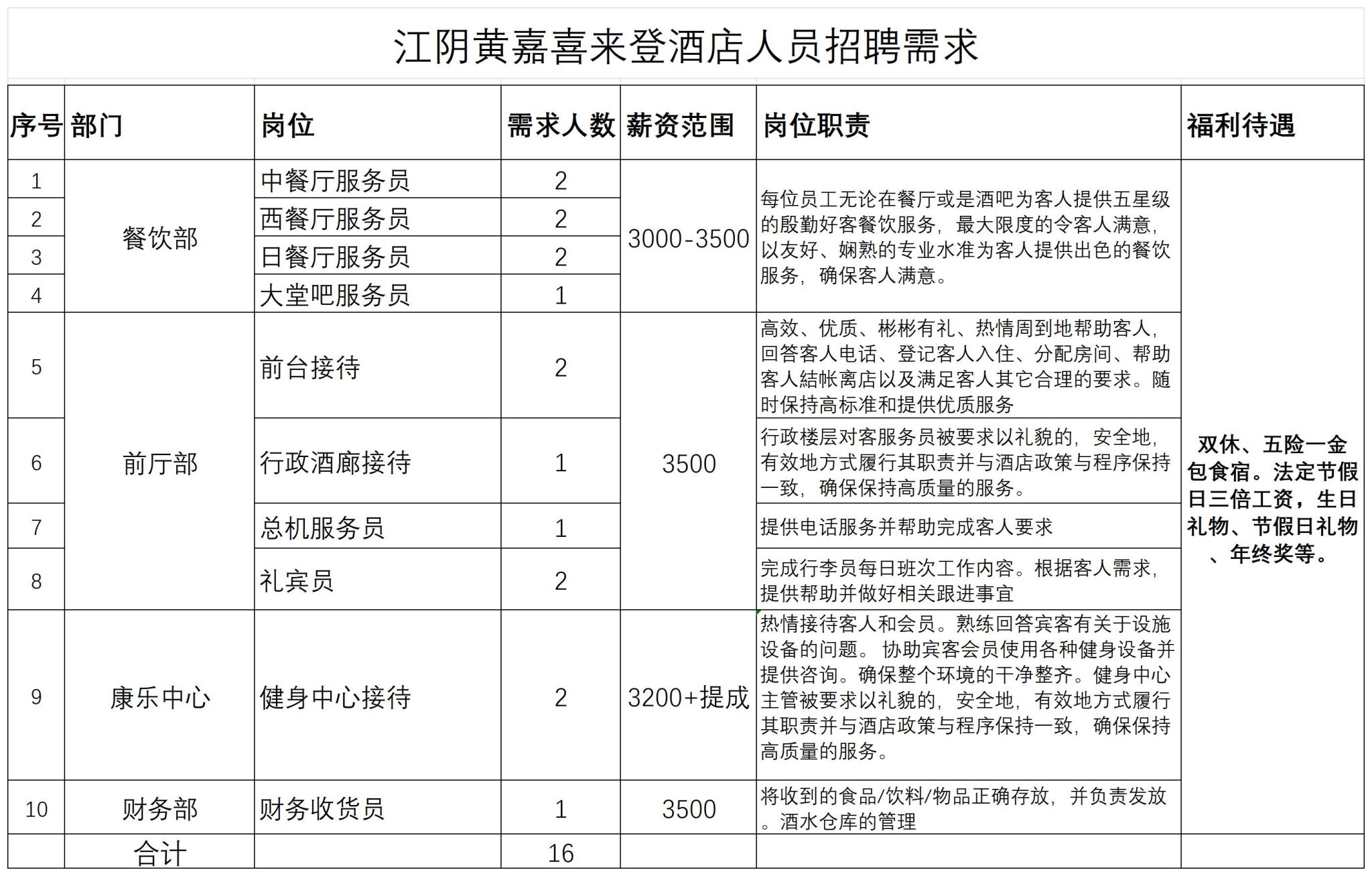 江阴黄嘉喜来登酒店招聘信息