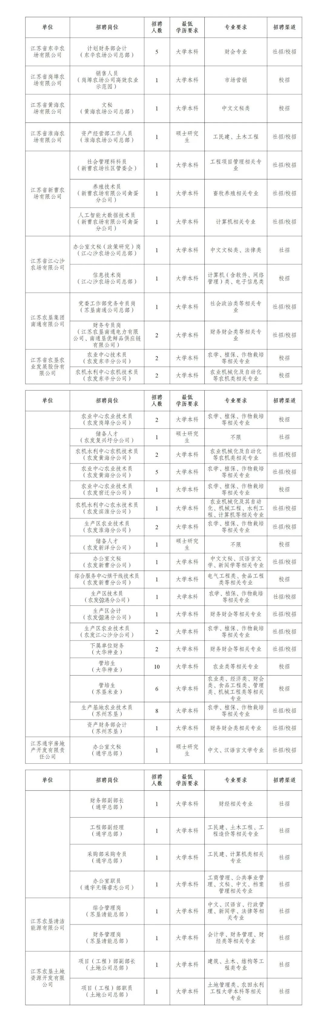 集团现有直属企业21个、农场公司18个,土地总面积约180万亩,在职职工4万人。在盐碱地上建起江苏规模最大、现代化水平最高的商品粮基地,形成以现代农业为核心,医药健康、房地产及商业贸易为支撑的产业体系。现面向高校毕业生、社会工作人员招聘77人,具体公告如下。