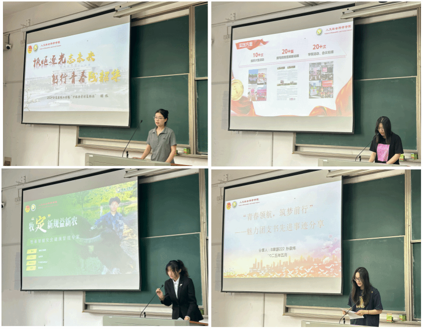 5月15日,人文学院团委在南校区博学楼C103召开“青春为中国式现代化挺膺担当”五四主题团课暨先进事迹分享会。人文学院入团积极分子、菁英人才学校培训班学员、团支书等150余人参加。会议由学院团委副书记乐珮珮主持。