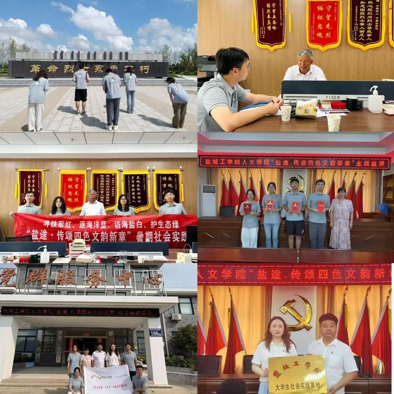 为创新青年参与地域文化传承模式,深入挖掘盐城“红蓝白绿”四色文化基因,7月至8月,人文学院“盐途·传颂四色文韵新章”暑期社会实践团开展了为期1个月的特色文化调研活动。实践团以“行走的课堂”为形式,深入走进盐城红色教育基地、蓝色滨海生态区、白色海盐产业带和绿色森林湿地等特色文化场所,用青年视角探寻文化传承新路径。