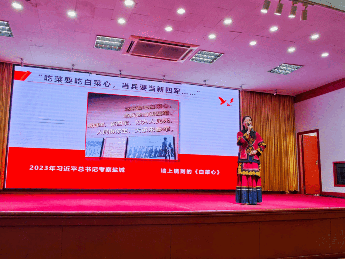陈迅同学以《唱着红歌去支教——从“民心谣”里读懂党的“人民密码”》为题,以《白菜心》等盐城本土红歌为切入点,结合自身支教经历,围绕“我是谁、依靠谁、为了谁”的时代之问,用真挚情感与深刻立意阐释了党的群众路线与人民情怀,其生动演绎与动人表达赢得了评委的高度认可。