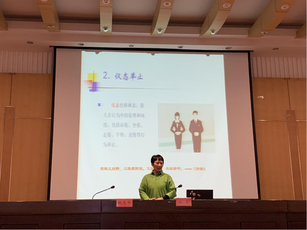 本次讲座是“新生大学第一课”系列活动之一,旨在进一步规范大学生的行为,加强大学生礼仪素养的培养,加深对人文精神的理解。