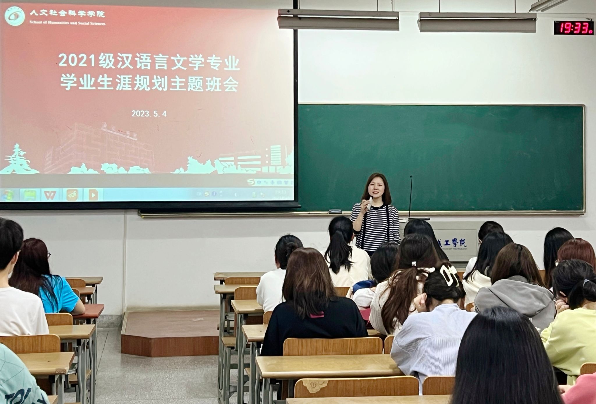 5月4日晚,人文学院2021级汉语言文学专业学业生涯规划主题班会在希望大道校区博学楼A203召开。学院党总支副书记、21级中文班辅导员姚爱华主持班会,2021级全体汉语言文学专业学生参加。