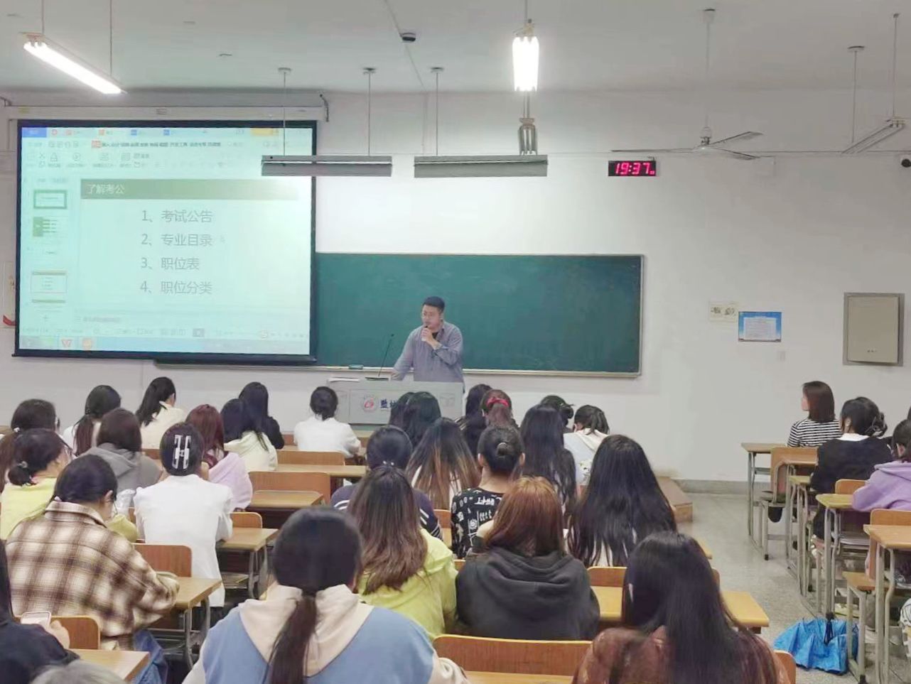 会上,学院专职辅导员许建文详细解读了考公流程。他从报名选岗、笔试面试、政审体检等多方面分享了考公技巧,并提醒同学们尽早了解历年招考情况,科学制定备考计划,及时关注公告发布。对于考公、考研和就业的选择问题,他从专业就业前景、个人发展需求等多个方面提出建议,供同学们参考。