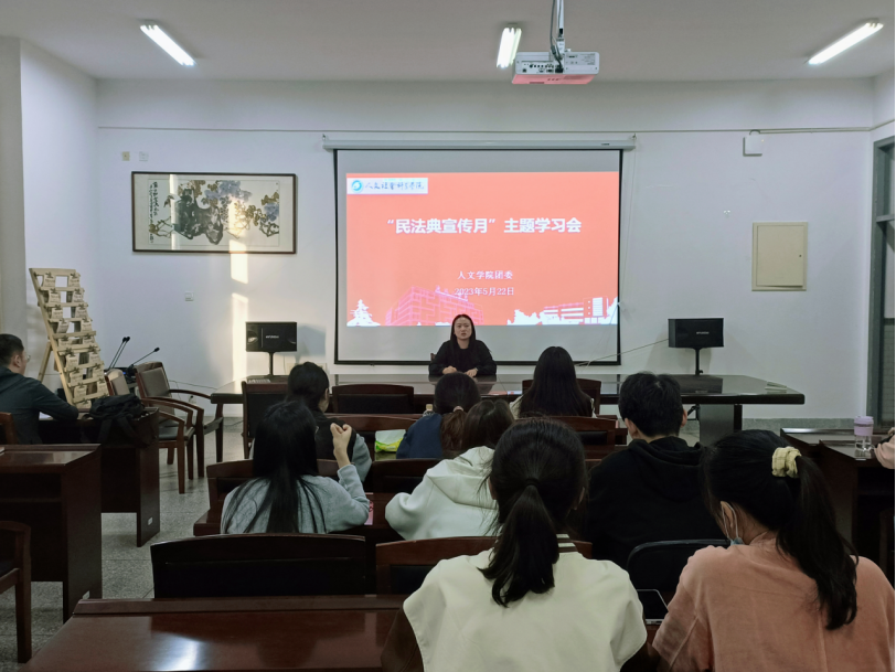 召开“民法典宣传月”团干专题学习会。5月22日,人文学院辅导员乐珮珮组织学生干部在仁和楼A304集中学习了《民法典》的主要内容,并结合典型案例深入分析民法典在人民生活中的运用。随后,全体学生干部观看了民法典动漫微视频。
