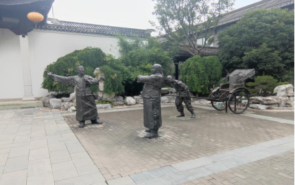 团队成员们在珠溪古镇时光记忆馆中聆听工作人员的讲解,了解到伍佑场“三十六盐场,大不过伍佑场”的美称以及伍佑的千年盐史。在二楼的展厅中还了解到盐城“四色文化”中另一个除“白色海盐文化”之外的“红色铁军文化”。了解到抗日烈士姚公铭、铁人英雄韩必和的伟大事迹。参观结束后,小组成员作为讲解员向现场观众讲解珠溪古镇的传统文化及历史沿革,帮助更多人了解珠溪古镇背后党的故事。小组成员向现场观众讲解到:“从明代至清末,伍佑有15 人上榜于历代登科名录中。《盐城县志》记载,李汝珍著书《镜花缘》于伍佑,更有‘西泠印社’大家黄易在珠溪泼墨挥毫等。”走进古镇,我们感受到历史文化与现代旅游的碰撞,在源远流长的历史文化之外,古色古香的街巷中设有大剧院、言+买书局等老少皆宜的热门旅游景点,吸引更多游客到来。可以看出,珠溪古镇在“以文塑旅,以旅彰文”的道路上一直在努力前进。