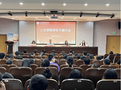 为进一步强化学生干部队伍建设,提高学生自我教育、自我管理、自我服务的能力。9月13日晚,人文学院在希望大道校区土木馆报告厅召开2023年秋学期学生干部大会。人文学院党总支书记何登溢、党总支副书记姚爱华出席,学生党支部书记乐珮珮、专兼职辅导员、全体学生干部、入党积极分子等100余人参加,学工办副主任魏语婷主持会议。