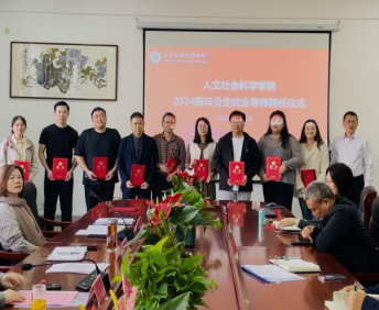 周晓燕宣读《关于聘任人文学院2024届毕业生就业导师的决定》文件。她指出,毕业生能否顺利就业是教育教学和人才培养质量的重要反映,要进一步厘清“高质量就业与充分就业”、“全体教师与就业”、“专业老师参与就业与辅导员参与就业”、“家长与就业”之间的关系,扎实推进就业工作,力求打通人才培养输出的“最后一公里”。