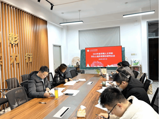 为进一步推进学院大学生心理健康教育工作,守护学生身心健康,12月11日上午,人文学院在希望大道校区仁和楼A302会议室召开2023年秋学期学生心理异常情况研判会议,学院党总支书记何登溢出席会议,全体专兼职辅导员参会。会议由学院党总支副书记姚爱华主持。