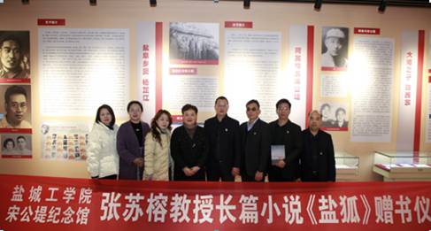 小说《盐狐》主要反映了1940年代国家危难之际盐阜儿女舍生取义的革命历史,展现了刘凤春所代表的盐阜地区方强烈士、胡特庸烈士、程步凤烈士、郭猛烈士等形象。该作品获盐城市政府文艺奖一等奖。本次在宋公堤纪念馆举行的《盐狐》赠书仪式,既是学院和新滩盐场结对开展党建融合活动,强化党建的沟通与交流,在经验共享中互补优势的具体成果,又是推进党史学习教育、重温盐阜地区可歌可泣的历史、传承红色基因的实践党课,以及深化课程思政、丰富课程内容、落实立德树人根本任务的有效形式。