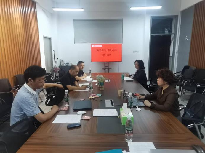 7月2日上午,人文学院沟通与写作教研部在仁和楼A302会议室召开首次教学研讨活动。沟通与写作教研部主任张翠爱主持会议,院长周晓燕、副院长徐成、中文系主任蒋继华、教科研办主任袁征及柳应明老师参会。