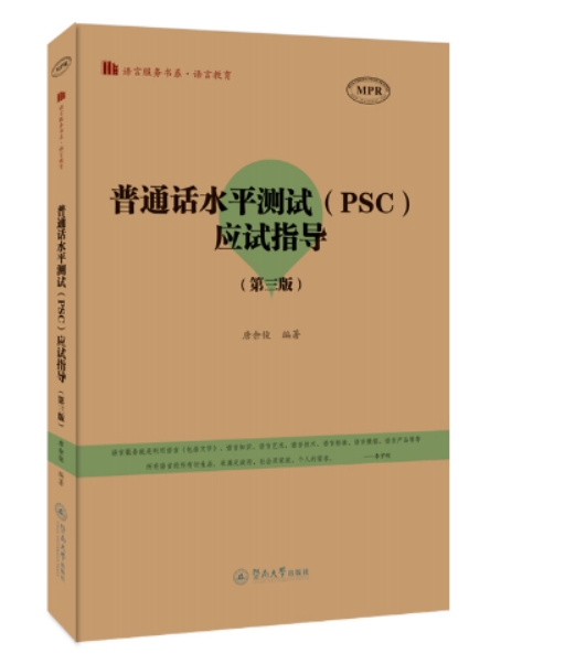 目前,唐余俊老师编著的《普通话水平测试(PSC)应试指导》印数已达15000本。相比前面两版,第三版更适应考试群体的变化,注重有趣性、参与性等,相关音频材料制成MPR条码,供读者扫码收听。