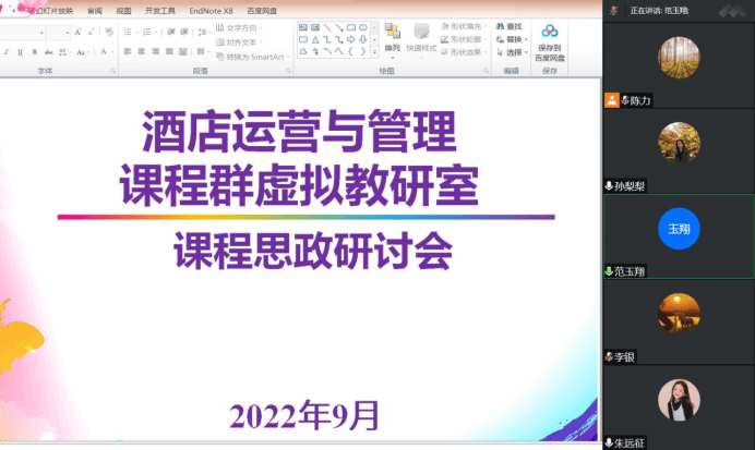 9月16日下午,酒店运营与管理课程群虚拟教研室举办课程思政研讨活动。本次教研活动通过腾讯会议在线开展。