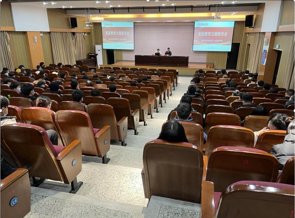 各班辅导员组织责任班级学生开展宪法主题班会,学习习近平新时代中国特色社会主义思想特别是习近平法治思想、习近平总书记关于宪法的重要论述,学习宪法相关内容。在此基础上,各班还观看了一部与宪法相关的电影。