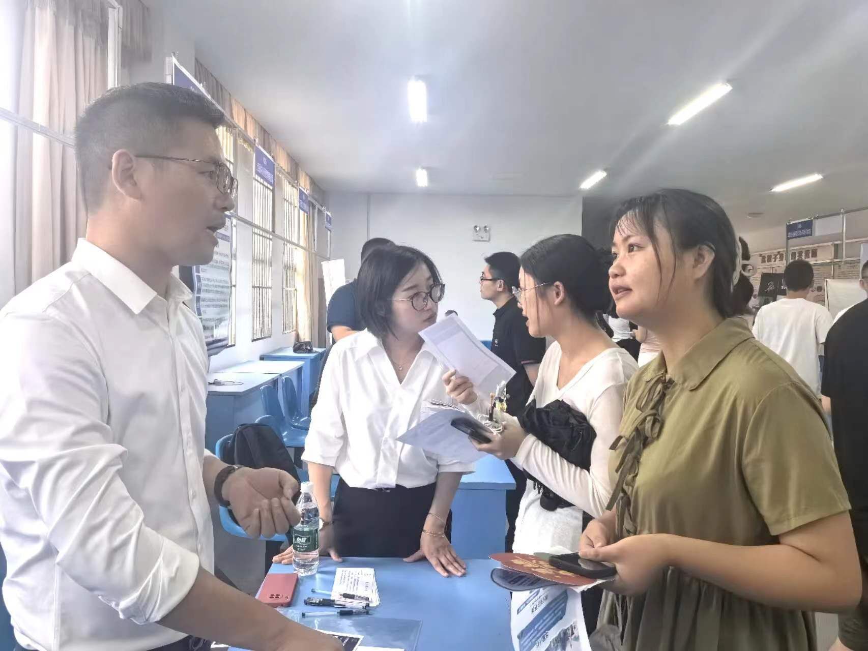 何登溢对参加本次专场招聘会的用人单位表示诚挚的感谢,向用人单位详细了解其发展状况、招聘需求及毕业生投递简历等情况。同时,还与求职毕业生亲切交谈,了解毕业生的求职意向,鼓励毕业生积极与用人单位沟通,了解岗位要求,精准剖析自身情况,增强岗位匹配度,争取实现与用人单位的“双向奔赴”。姚爱华耐心听取用人单位对市场化人才培养的意见和建议,并向用人单位介绍了学院的专业特色和人才培养成果,积极为毕业生提供精准就业指导服务,针对企业人才需求推介符合岗位需求的毕业生参与应聘。