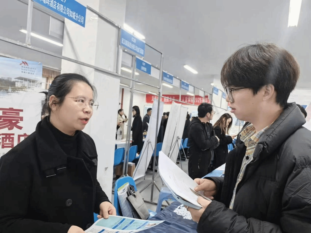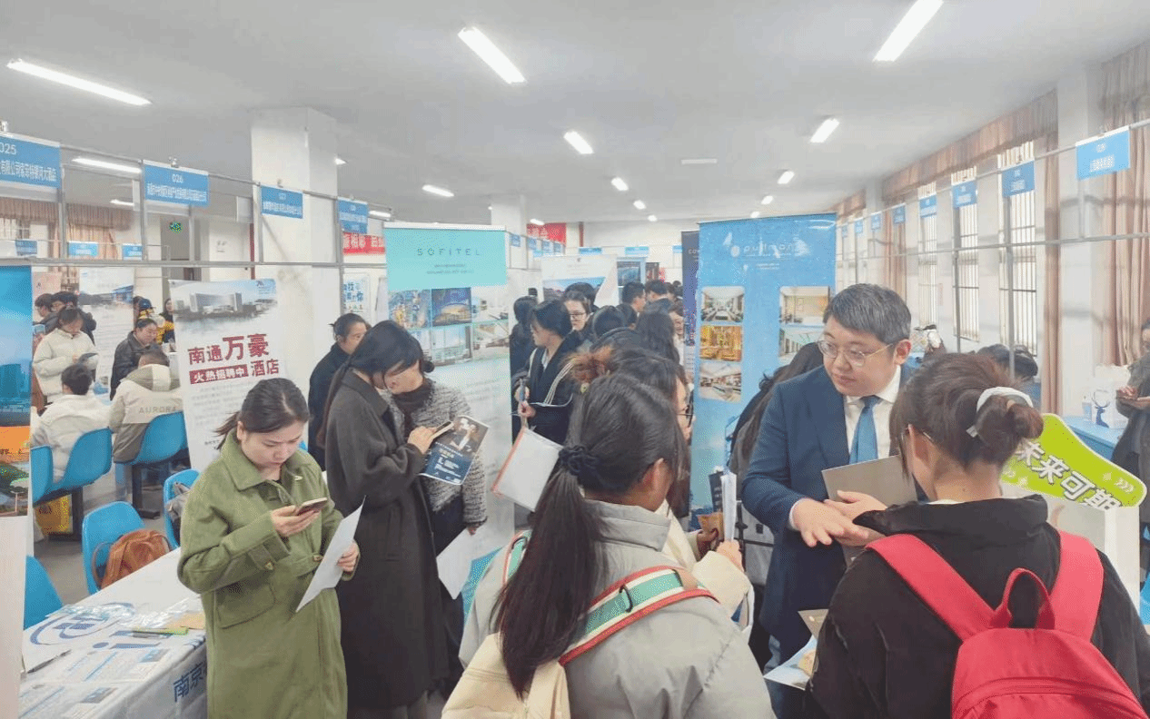 本次招聘会共有55家文旅行业的企业参会,其中包括万豪 、锦江 、希尔顿 、洲际 、凯悦 、雅高 、香格里拉 、温德姆 、绿地等享誉国内外的酒店集团以及江苏粉笔培训中心有限公司、盐城先行教育科技有限公司、常州九洲农文旅发展有限公司、南通顺丰速递有限公司、江苏海马纺织机械有限公司、江苏淘米信息科技有限公司等诸多优质企业,累计提供500余个就业岗位。活动现场各参展企业通过醒目的宣传海报、宣传册、精彩的企业视频等多种形式展示企业文化、岗位需求。前来应聘的同学们手持精心制作的简历,穿梭于各个展位之间,他们就工作内容、薪资待遇、职业发展路径等问题与招聘人员深入交流,用扎实的专业知识和良好的沟通能力展现自己的实力与风采。