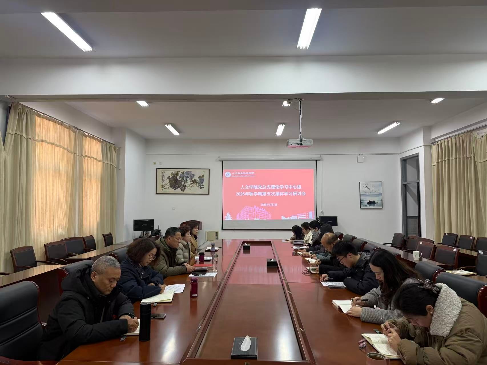 1月7日下午,在仁和楼A304会议室,人文学院党总支理论学习中心组召开2025年秋学期第五次集体学习研讨会。会议由学院党总支书记何登溢主持,学院党总支理论学习中心组成员参加。