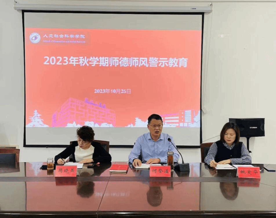 为进一步加强教师队伍建设,营造风清气正的教育环境,10月25日下午,人文学院在仁和楼A304开展师德师风教育。会议由学院党总支书记何登溢主持,学院全体教职工参加会议。