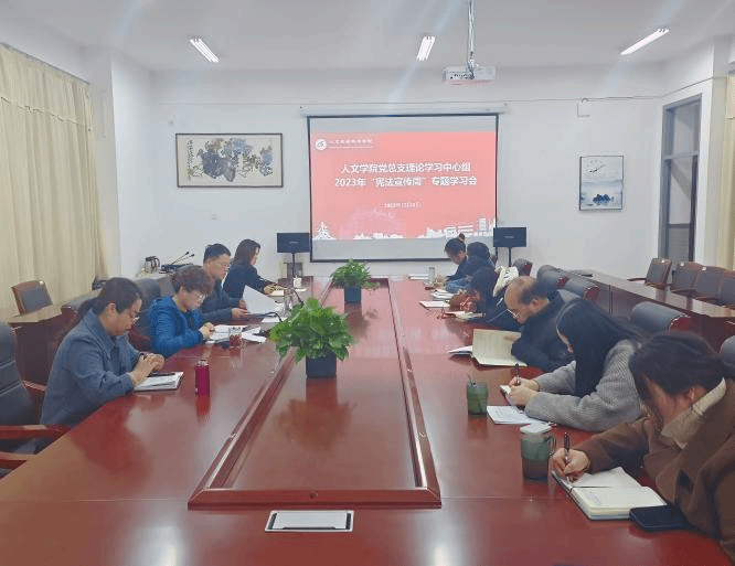 12月6日下午,在仁和楼A304会议室,人文学院党总支理论学习中心组召开2023年“宪法宣传周”专题学习会,会议由学院党总支书记何登溢主持,理论学习中心组成员参加。